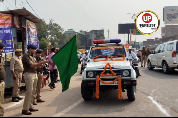 पुलिस अधीक्षक ने यातायात जागरूकता रैली को दिखाई हरी झंडी, लोगों को हेलमेट पहनाकर यातायात जागरूकता का दिया संदेश