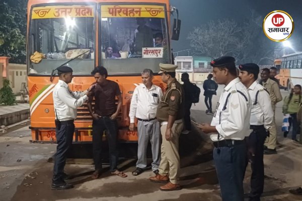 महराजगंज में यातायात जागरूकता अभियान, रोडवेज चालकों का ब्रेथ एनालाइजर से परीक्षण