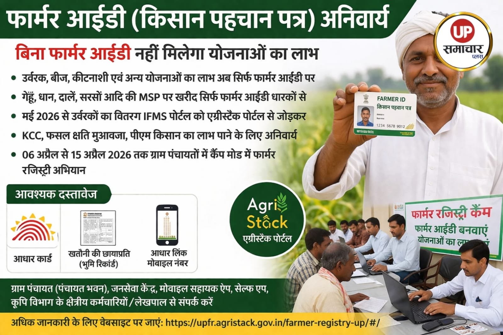 मई 2026 से उर्वरकों का वितरण भी IFMS पोर्टल को एग्रीस्टैक से जोड़कर फार्मर आईडी के आधार पर किया जाएगा। वहीं केसीसी, पीएम किसान और फसल नुकसान पर मुआवजा पाने के लिए भी यह पहचान पत्र जरूरी कर दिया गया है।